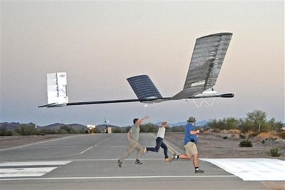 據(jù)香港《文匯報》報道,這架名為“Zephyr(微風(fēng))”的無人偵察機,由英國國防公司Qinetiq制造。“Zephyr”機身由碳纖維制造,只重30公斤,飛行高度達6萬英尺,時速可達112公里,能抵受攝氏45度至零下75度的溫差!癦ephyr”60英尺(18米)長機翼上的太陽能充電板,能為它提供源源不絕的能源。