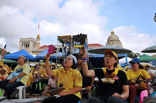 泰國(guó)反政府示威者三日在曼谷總理府示威。