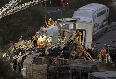 洛杉磯火車相撞事故現(xiàn)場(chǎng)