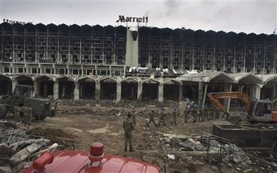 遭自殺式炸彈襲擊后的萬豪大酒店。