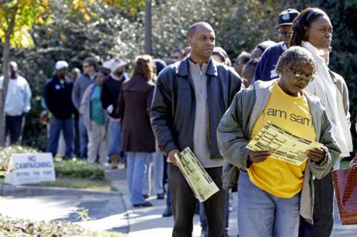 選舉官員指出,鑒于今年登記的選民大增,為了避免投票當(dāng)天大排長龍和二○○四年混亂的投票機故障事件重演,許多州都提早投票。在關(guān)鍵的“搖擺州”如俄亥俄州、佛羅里達州及內(nèi)華達州,設(shè)在圖書館、商場和學(xué)校的投票中心,都可見排隊等候的人龍。在佐治亞州和北卡羅來納州,本周參與提前投票的選民比上屆多出一倍。