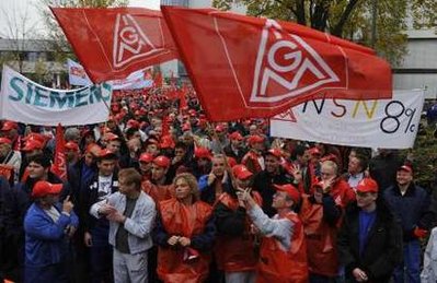 IG Metall工會(huì)認(rèn)為,德國(guó)企業(yè)的贏利增長(zhǎng)比德國(guó)工人的薪水增長(zhǎng)快得多。但是德國(guó)企業(yè)表示,全球金融危機(jī)的影響使更大幅度的加薪變得不太現(xiàn)實(shí)。