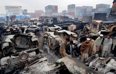 運往駐扎在阿富汗內陸地區(qū)的北約和美國軍隊的物資有70%以上是從巴基斯坦南部港口城市卡拉奇卸船,然后用卡車經(jīng)過白沙瓦送到目的地。但是軍用物資在白沙瓦和周圍的中轉站以及在通過開伯爾山口時頻繁受到塔利班激進分子的襲擊。
