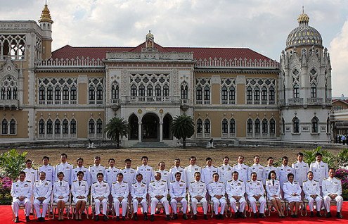 中新網(wǎng)12月23日電 綜合報(bào)道,泰國總理阿披實(shí)22日下午率領(lǐng)35名新內(nèi)閣成員,在曼谷集拉達(dá)王宮向普密蓬國王宣誓就職。 泰國新政府將于23日召開首次內(nèi)閣會(huì)議,主要議程是審議通過新政府的施政綱領(lǐng)。