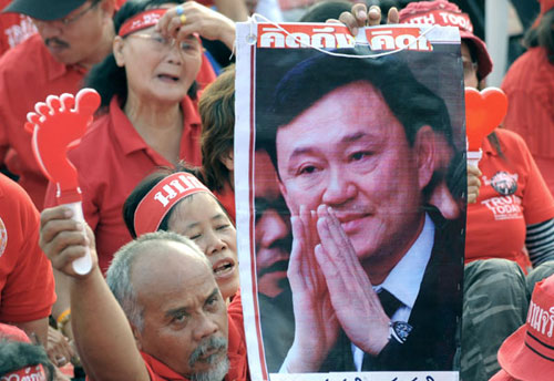 他信支持者大規(guī)模示威 要求泰國舉行新大選(圖)