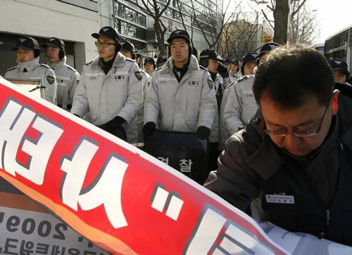 首爾當(dāng)?shù)?3日中午,數(shù)十名雙龍工會(huì)及一些市民團(tuán)體成員圍堵在中國大使館門前示威,在近兩個(gè)小時(shí)的抗議過程中,示威者借助擴(kuò)音器不斷地喊“中國上汽應(yīng)做出賠償”、“上汽竊取雙龍汽車核心技術(shù)”等口號(hào),這些人的圍堵給使館人員進(jìn)出造成很大不便。多家韓國媒體也趕到抗議現(xiàn)場(chǎng)報(bào)道,紐西斯通訊社報(bào)道稱,參加示威的有雙龍工會(huì)等11個(gè)市民團(tuán)體成員。工會(huì)方面宣稱,由于上汽是中國國有企業(yè),中國政府也該為雙龍危機(jī)負(fù)責(zé)。而一些團(tuán)體指責(zé)“上汽偷竊雙龍技術(shù)是對(duì)數(shù)十萬韓國工人的犯罪”,要求韓國政府追究上汽責(zé)任。