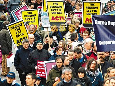 示威由愛爾蘭總工會(ICTU)發(fā)起。不少示威者來自全國,甚至帶同小孩游行。工會指摘商界精英摧毀經濟,卻要平民受災。ICTU領袖貝格說:“我們憤怒,因為下一代未出生便要背負按揭重擔,為的只是挽救銀行業(yè)!