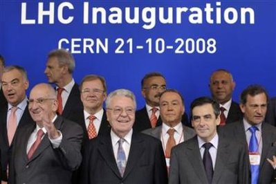 10月21日各國領(lǐng)導(dǎo)人在歐洲大型強(qiáng)子對(duì)撞機(jī)啟用儀式上。