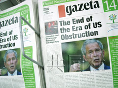 中新網(wǎng)12月13日電 據(jù)日本共同社報道,隨著《氣候變動框架公約》締約國第14次會議在波茲南閉幕,波蘭著名報紙《選舉報》(英文版)12日刊行一份“假號外”,諷刺美國布什政府始終拒絕批準《京都議定書》。