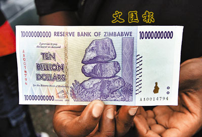 中新網(wǎng)12月21日電 據(jù)香港《文匯報(bào)》報(bào)道,津巴布韋政局動(dòng)蕩,經(jīng)濟(jì)惡化和嚴(yán)重通脹,央行前日起正式發(fā)行面額為10億、50億和100億的新鈔,創(chuàng)下世界之最。該國(guó)一周前才發(fā)行了面額1千萬(wàn)、5千萬(wàn)和1億的3種新鈔。