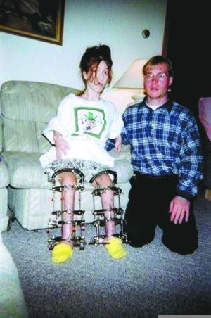 在這幸福的背后是蒂凡尼經(jīng)受的拉骨增高手術(shù)帶來(lái)的痛苦!搬t(yī)生敲斷我的腿骨,在斷裂的骨骼里植入一個(gè)裝置,這種裝置能夠?qū)⒐穷^拉長(zhǎng)!钡俜材岬拿劰恰⑼裙呛捅酃枪步邮芰12次手術(shù),最后身高增加了大約35厘米,達(dá)到1.47米。