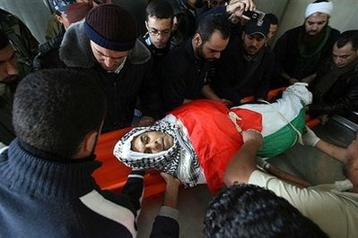 12月28日,巴勒斯坦民眾正在為空襲死難者舉行葬禮。