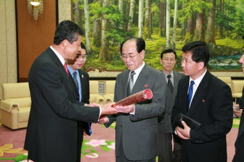 中新網(wǎng)5月6日電 中國駐朝鮮大使館網(wǎng)站消息,5月5日,朝鮮最高人民會(huì)議常任委員會(huì)委員長金永南受朝鮮勞動(dòng)黨總書記金正日的委托,在萬壽臺(tái)議事堂會(huì)見了中國駐朝鮮大使劉曉明。劉大使請(qǐng)金永南委員長轉(zhuǎn)達(dá)中共中央總書記、國家主席胡錦濤致金正日總書記的口信和親切問候。金永南委員長表示感謝并允轉(zhuǎn)達(dá),同時(shí)也請(qǐng)劉大使轉(zhuǎn)達(dá)金正日總書記對(duì)胡錦濤總書記的親切問候。
