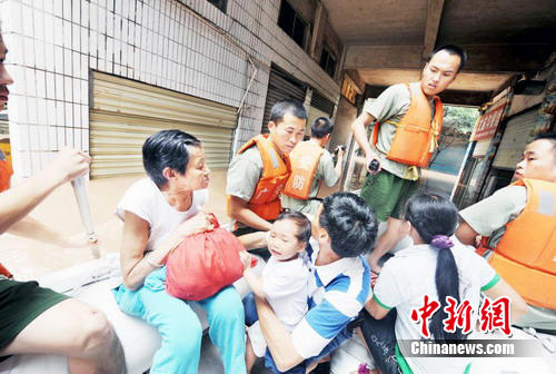 在特大洪水來(lái)臨之際,廣安市武警官兵充分發(fā)揮“特別能吃苦,特別能戰(zhàn)斗,特別能奉獻(xiàn)”的精神,積極戰(zhàn)斗在抗洪搶險(xiǎn)第一線(xiàn),與洪水賽跑,與時(shí)間賽跑,深入街巷搜尋和和轉(zhuǎn)運(yùn)被洪水圍困的居民,確保群眾生命安全。 截至記者發(fā)稿時(shí),廣安目前還沒(méi)有因?yàn)楹樗斐傻娜藛T傷亡。(完)