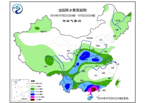 21日20時至22日20時,新疆西部、青海南部和東部、西藏中部、甘肅東部、寧夏、陜西大部、山西南部和西北部、內(nèi)蒙古東北部、東北大部、黃淮大部、江淮、江漢、江南西部和南部、華南大部、西南地區(qū)大部等地有小到中雨或陣雨,其中,甘肅東部、陜西南部、四川北部、河南中南部、湖北北部、安徽中北部、江蘇西北部、云南東部、廣西東南部、廣東大部、海南等地有大雨或暴雨;廣東沿海、海南北部等地有大暴雨,局部特大暴雨;上述局部地區(qū)并伴有短時雷雨大風(fēng)等強(qiáng)對流天氣。新疆中部、內(nèi)蒙古西部、東北東部等地有4~6級風(fēng)。受熱帶風(fēng)暴“燦都”的影響,南海北部海域?qū)⒂?~9級大風(fēng),“燦都”中心經(jīng)過的附近海面的風(fēng)力可達(dá)10~11級,部分海域陣風(fēng)可達(dá)12級。