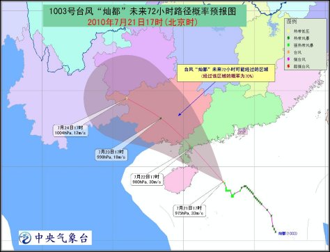 中新網(wǎng)7月21日電 中央氣象臺7月21日18時發(fā)布臺風(fēng)橙色預(yù)警:今年第3號強(qiáng)熱帶風(fēng)暴“燦都”于21日17時加強(qiáng)為臺風(fēng),17時其中心位于海南省文昌市東南方大約210公里的南海北部海面上,就是北緯19.0度,東經(jīng)112.8度,中心附近最大風(fēng)力有12級(33米/秒),中心最低氣壓為975百帕。