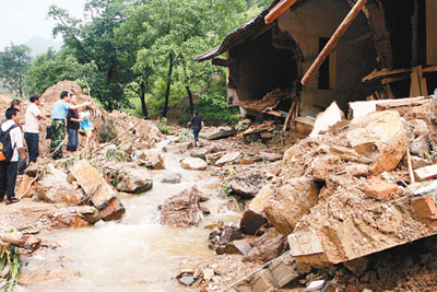 這是此次商洛地區(qū)發(fā)生水災以來,一個村組集中死亡、失蹤最多的。目擊群眾講,那不是“泥石流”,而是“泥山流”,因為把一排房屋“像風吹紙片”一樣沖倒的,是數(shù)不清的幾個人合抱不住的大石頭,時間僅持續(xù)了一分鐘左右。