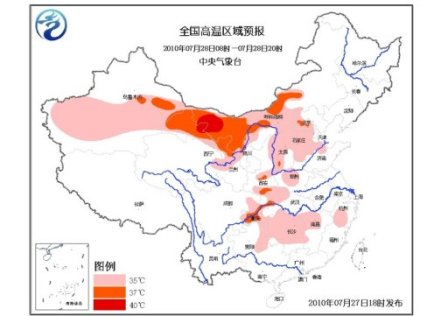 預(yù)計(jì),明天白天,北京大部、天津西部、河北中西部和南部、山西大部、陜西東部及關(guān)中大部、寧夏西部、河南中西部、山東北部、湖北西部、四川盆地東北部、重慶大部、貴州東部、湖南大部、江西西部、浙江西南部等地有35℃以上的高溫天氣,局地最高氣溫可達(dá)37~38℃;內(nèi)蒙古中西部、甘肅中西部、新疆吐魯番盆地及南疆盆地大部等地將有35~37℃的高溫天氣,局部地區(qū)最高氣溫可達(dá)40℃以上。