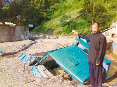 24日凌晨5點(diǎn)多,天麻麻亮,胡仁海聽到山洪聲音好大,就趕緊起來。他看到山洪激起的水浪有十幾丈高。胡仁海擔(dān)心大雨滑坡,就把孫子“拉拉”安頓在靠河的房子里。突然,身后一陣巨響,他回頭去看,只見巨大的山洪將靠河的房子連根沖走,他的孫子“拉拉”,嘩啦一下就被洪水沖走了……