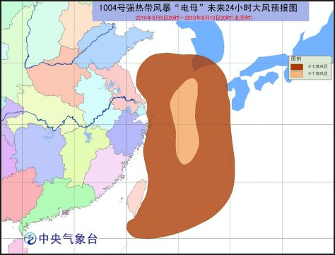 中新網(wǎng)8月9日電 據(jù)中央氣象臺預報稱,中央氣象臺8月9日18時發(fā)布臺風黃色預警:今年第4號熱帶風暴 “電母”(DIANMU,名字來源:中國,名字意義:神話中的雷電之神)于8日晚在臺灣以東洋面上生成,9日下午加強為強熱帶風暴。9日17時其中心位于浙江省舟山市東南方大約390公里的東海海面上,就是北緯28.0度,東經(jīng)125.5度,中心附近最大風力有11級(30米/秒),中心最低氣壓為980百帕。