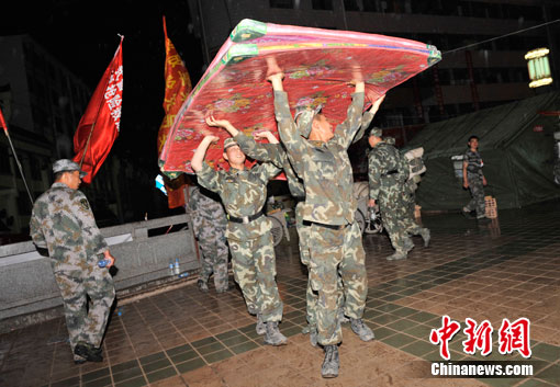 中新網(wǎng)舟曲8月11日電(記者 唐偉杰)在數(shù)十分鐘的密集電閃雷鳴之后,舟曲災(zāi)區(qū)開(kāi)始降雨,目前雨勢(shì)較小。