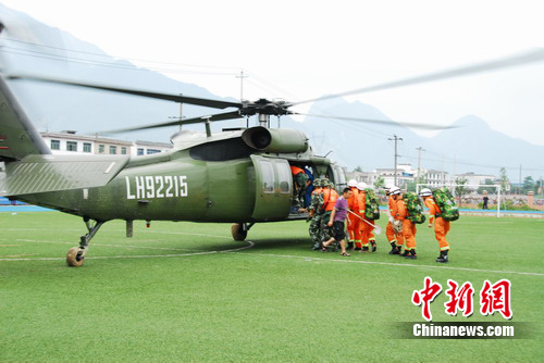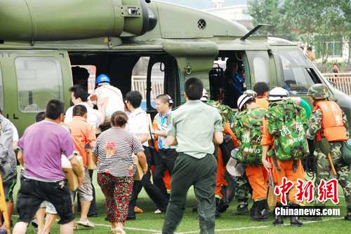中午12時05分,空軍陸航團(tuán)派出兩架直升飛機(jī)前來支援,深入災(zāi)區(qū)探測道路情況和人員被困情況。從下午1點14時45分至下午4點,消防支隊共派出30人,由參謀長徐昌榮帶隊分六批次搭乘空軍陸航團(tuán)飛機(jī)帶上破拆工具、生命探測儀、照明工具、水上救援工具、安全救生繩索等已安全到達(dá)清平災(zāi)區(qū)。30名消防官兵到達(dá)災(zāi)區(qū)后,立即設(shè)立了消防部隊搶險救援指揮部,指揮一線官兵積極投入救援工作,爭分奪秒營救被困群眾。