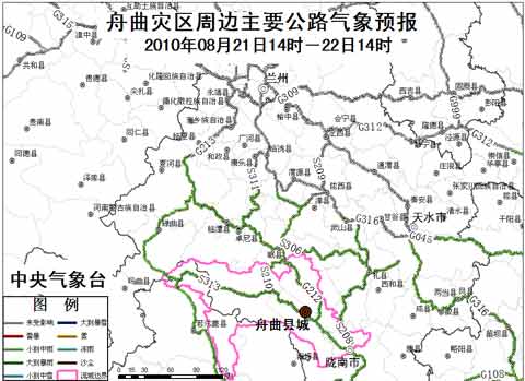 舟曲周邊主要公路仍有降雨,路滑注意安全。具體預(yù)報如下: