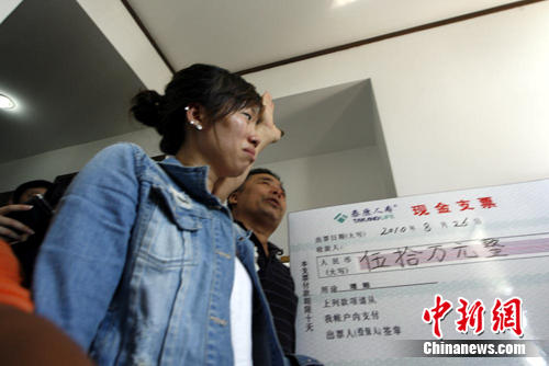 26日10時30分左右,泰康人壽總裁劉經(jīng)綸趕到遇難者家屬居住的光明商務(wù)酒店,親自將寫有50萬元的支票交到遇難者姚鐵強的家屬手中。這是伊春空難發(fā)生以來,遇難家屬獲得的第一筆大額賠款。