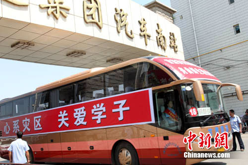 中新網(wǎng)蘭州8月27日電 (記者 張玉璽)27日下午1時許,26輛旅游大巴從蘭州始發(fā),駛往舟曲,準備在28日上午轉(zhuǎn)運首批舟曲異地就學(xué)的第一批1000名學(xué)生和60名老師到蘭州就學(xué)。