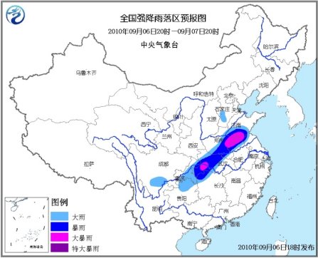 9月6日20時到7日20時,山東中南部、安徽北部、江蘇北部、河南東部和南部、湖北中西部、重慶中東部、貴州北部、湖南西北部以及川西高原東南部、河北西南部等地有大雨或暴雨,其中,湖北西南部、河南中部偏東地區(qū)、山東西南部、安徽北部、江蘇西北部等地局部有大暴雨;上述部分地區(qū)并伴有短時雷雨大風(fēng)等強對流天氣。