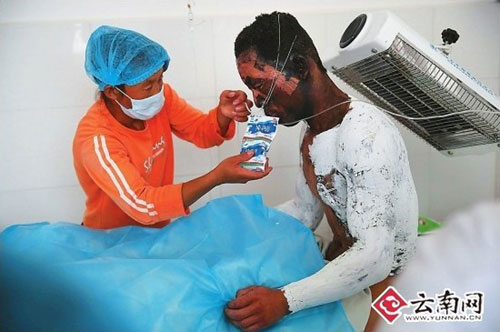 據(jù)瀘西縣人民醫(yī)院醫(yī)師彭銳介紹,12名傷者中4人是特重度燒傷,3人是重度燒傷,還有一個(gè)是燒傷的面積小、程度也較輕。另有3人是輕微燒傷,還有一人輕微骨折,正在骨外科接受治療。