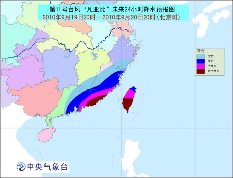 受其影響,未來24小時(shí),東海南部、臺(tái)灣以東洋面、臺(tái)灣海峽、巴士海峽、巴林塘海峽、南海東北部、浙江南部沿海、臺(tái)灣及其沿海、福建沿海、廣東中東部沿海將有7-9級(jí)大風(fēng),其中福建中南部沿海、廣東東部沿海、臺(tái)灣海峽的部分海面或地區(qū)風(fēng)力可達(dá)10-11級(jí),“凡亞比”中心經(jīng)過的附近海面或地區(qū)的風(fēng)力有12-13級(jí);福建大部、浙江南部、江西東南部、廣東中東部、臺(tái)灣等地將有大到暴雨,其中福建東南部、廣東東部、臺(tái)灣等地的部分地區(qū)有大暴雨,局地有特大暴雨。中央氣象臺(tái)已于今日18時(shí)發(fā)布了暴雨藍(lán)色預(yù)警。