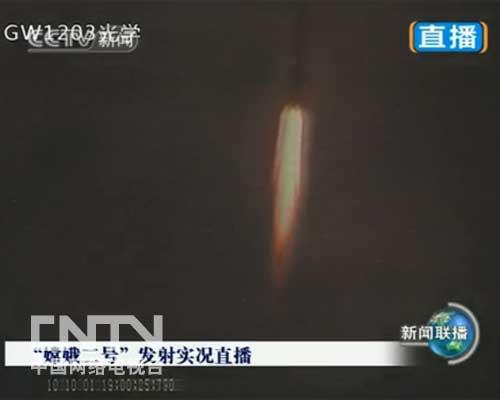 其后在19時25分05秒至27分11秒,《新聞聯(lián)播》再次現(xiàn)場直播了“嫦娥二號”星箭分離的實況。兩段直播長6分07秒。
