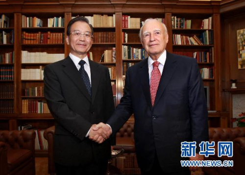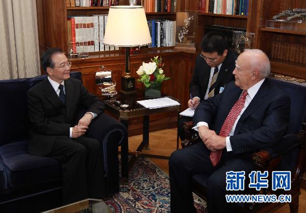 中國(guó)國(guó)務(wù)院總理溫家寶3日在雅典會(huì)見希臘總統(tǒng)帕普利亞斯。