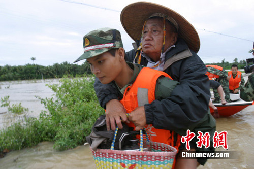 中新網(wǎng)瓊海10月6日電(孫勇)連日來,特大暴雨襲擊海南,道路、田地等一片汪洋,給人民群眾的生命財(cái)產(chǎn)安全造成了嚴(yán)重威脅。武警海南總隊(duì)官兵聞?dòng)嵕o急出動(dòng),全力以赴迎戰(zhàn)洪魔,竭盡全力搶險(xiǎn)救災(zāi),疏散、轉(zhuǎn)移、搶救受災(zāi)群眾2000余人,挽回經(jīng)濟(jì)損失3500余萬元。