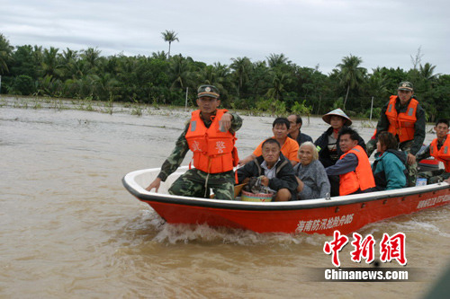 13時(shí)許,萬寧市萬城鎮(zhèn)紅關(guān)村暴雨持續(xù)不斷,1000余名村民需緊急轉(zhuǎn)移撤離。武警三亞市支隊(duì)奉命派出120名官兵,攜帶救生衣、雨衣等搶險(xiǎn)物資驅(qū)車趕往紅關(guān)村疏散轉(zhuǎn)移被困村民。由于村民躲在家里不愿上救生艇,官兵們一邊耐心說服、勸導(dǎo),一邊協(xié)同地方領(lǐng)導(dǎo)組織村民向安全地帶轉(zhuǎn)移。經(jīng)過將近6個(gè)小時(shí)的緊急撤離,所有被困村民安全轉(zhuǎn)移到安全地帶。