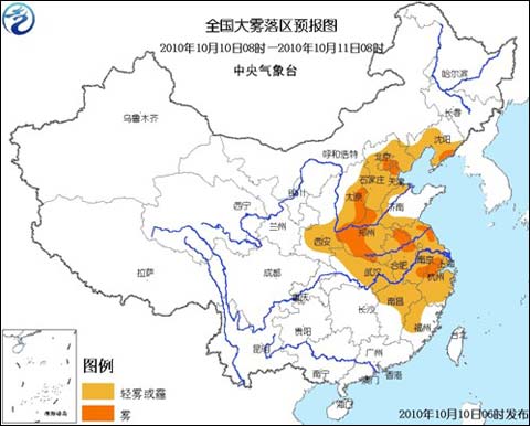 中新網(wǎng)10月10日電 據(jù)中國天氣網(wǎng)消息,中央氣象臺10月10日6時繼續(xù)發(fā)布大霧藍色預(yù)警: