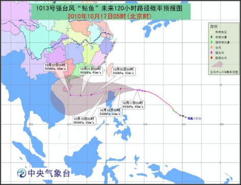 中新網(wǎng)10月17日電 據(jù)中央氣象臺(tái)預(yù)報(bào),今年第13號(hào)強(qiáng)臺(tái)風(fēng)“鲇魚”于16日晚加強(qiáng)為強(qiáng)臺(tái)風(fēng),17日上午8時(shí)再度加強(qiáng)為超強(qiáng)臺(tái)風(fēng),成為今年最強(qiáng)的臺(tái)風(fēng)。受其影響,未來三天,中國(guó)南部海區(qū)都將掀起7~9級(jí)的大風(fēng)。