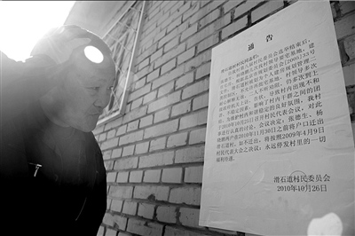 因兩名村民多次到鎮(zhèn)政府、區(qū)政府舉報(bào)本村問題,門頭溝區(qū)龍泉鎮(zhèn)滑石道村村委會(huì)于10月26日發(fā)出通告,要求兩戶村民在今年11月30日之前,將戶口遷出滑石道村,否則,永遠(yuǎn)停發(fā)村里的一切福利。