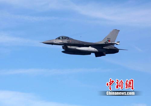 中國(guó)國(guó)家主席胡錦濤11月6日乘專機(jī)抵達(dá)里斯本。這是胡錦濤就任國(guó)家主席以來(lái)首次對(duì)葡萄牙進(jìn)行國(guó)事訪問,也是中國(guó)國(guó)家元首時(shí)隔11年再次對(duì)葡萄牙進(jìn)行國(guó)事訪問。專機(jī)駛?cè)肫咸蜒李I(lǐng)空后,葡方派兩架戰(zhàn)斗機(jī)護(hù)航。圖為在胡錦濤所乘專機(jī)右翼護(hù)航的葡萄牙戰(zhàn)機(jī)。