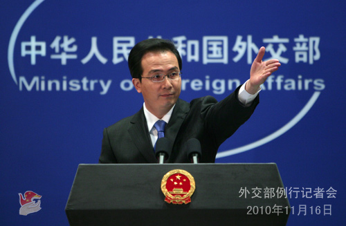 2010年11月16日,外交部發(fā)言人洪磊主持例行記者會(huì),就巴以和談、幾內(nèi)亞大選、中俄印外長(zhǎng)會(huì)晤等問題回答了記者提問。答問全文如下: