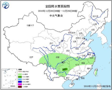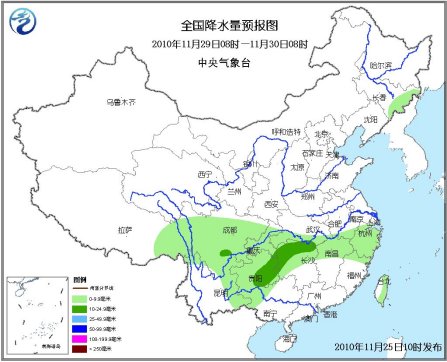 12月1日08時至2日08時,內(nèi)蒙古東北部有小到中雪,貴州、四川南部等地有小雨。