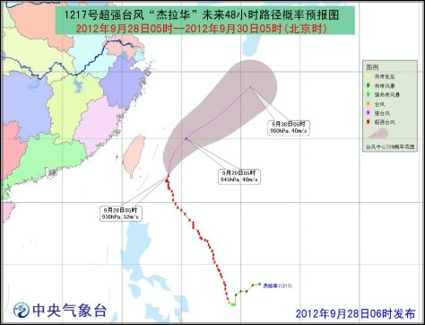 另外,今年第17號(hào)超強(qiáng)臺(tái)風(fēng)“杰拉華”的中心28日05時(shí)位于中國(guó)臺(tái)灣省花蓮市東南方大約310公里的西北太平洋洋面上,中心附近最大風(fēng)力16級(jí)(52米/秒),中心最低氣壓為930百帕。預(yù)計(jì),“杰拉華”將以每小時(shí)15公里左右的速度向偏北轉(zhuǎn)東北方向移動(dòng),逐漸向日本南部一帶沿?拷瑥(qiáng)度緩慢減弱。