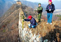 昨天,第四階段北京段長城踏查工作在延慶縣永寧鎮(zhèn)馬蹄灣村正式展開(見上圖)。至此,北京段長城的測繪工作已經(jīng)完成一半,在前期的測繪中,測繪專家和市文物專家發(fā)現(xiàn)了許多關于長城的新信息,如實際現(xiàn)存量多于此前預估數(shù),統(tǒng)一朝代的長城的不同結構以及發(fā)現(xiàn)了多處窯址等,這些都是此前關于長城文獻的記載中所沒有的。本階段預計將有懷柔、平谷、門頭溝三個區(qū)基本完成現(xiàn)場調查測繪工作,預計全部測繪將在明年結束。屆時,北京段長城的具體、翔實數(shù)據(jù)將會第一次明確。