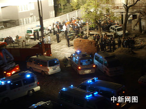 北京千龍網(wǎng)4日凌晨1時28分刊發(fā)的報道說,11月3日21時14分,北京市公安局接報:宣武區(qū)南橫街東口一施工預(yù)留工地民工臨時宿舍發(fā)生坍塌。接報后,市有關(guān)領(lǐng)導(dǎo)以及適應(yīng)急辦、市公安局、市安監(jiān)局、市建委、市衛(wèi)生局和宣武區(qū)有關(guān)負責同志及時趕赴現(xiàn)場組織救援,并到醫(yī)院看望傷員。