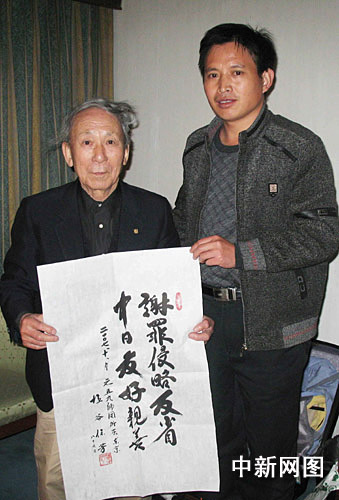 原日本侵華日軍59師團(tuán)45中隊(duì)退伍老兵鹽谷保芳日前再次來(lái)到中國(guó)山東泰安抗日烈士陵園謝罪,并向陵園敬獻(xiàn)了“謝罪侵略反省,中日友好親善”牌匾,以特殊方式傳達(dá)日本人民致力中日友好的信息。