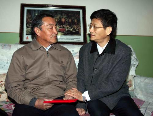 12月11日下午,孟建柱和隨行的公安部黨委委員、部長助理陳智敏,在新疆維吾爾自治區(qū)黨委常委、政法委書記朱海侖,自治區(qū)政協(xié)副主席、公安廳長柳耀華等陪同下,先后來到兩位革命烈士的家中,代表公安部黨委親切看望慰問了他們的父母,向英烈的親屬表示崇高的敬意。