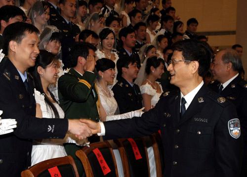 “從相知相愛到走進婚姻的殿堂,這是人生中最為幸福的時刻,也是人生中一個新的起點。我代表公安部黨委祝福新人們幸福無比,比翼雙飛,白頭偕老。”孟建柱向就要走進幸福殿堂的新人們送上真誠的祝福,并與他們合影。