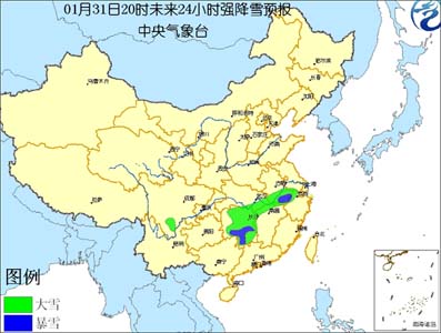 發(fā)表評(píng)論 中新網(wǎng)1月31日電 中央氣象臺(tái)今天下午六點(diǎn)鐘發(fā)布大雪預(yù)報(bào):受冷暖空氣的共同影響,預(yù)計(jì)今天夜間到明天白天,湖南大部、湖北東南部、安徽南部、江蘇西南部、浙江西北部、江西北部以及四川高原南部等地有中到大雪,其中,湖南南部、安徽南部的局地有暴雪。