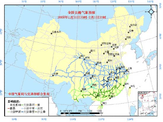 全國公路氣象預(yù)報(bào)(2008年1月31日20時(shí)-2月1日20時(shí))